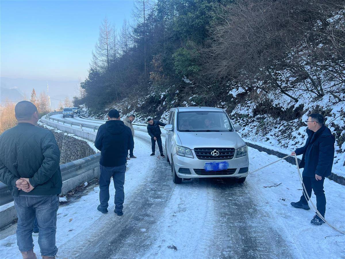 下午3时左右,一辆工程车因盘山公路积雪和结冰而抛锚,路过此地的建始县退役军人事务局负责人、建始县融媒体中心负责人及沿途群众10余人热心施救,推的推,拉的拉,经过半个多小时的努力,成功完成救援。