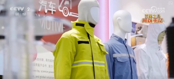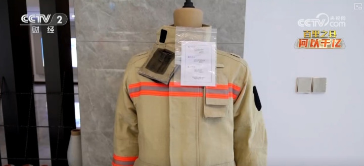 曹仁广介绍,材料一般就会放到衣服的第二层里,做成一个三层的衣服,穿上以后起到防火隔热的作用,来保护消防员的身体。